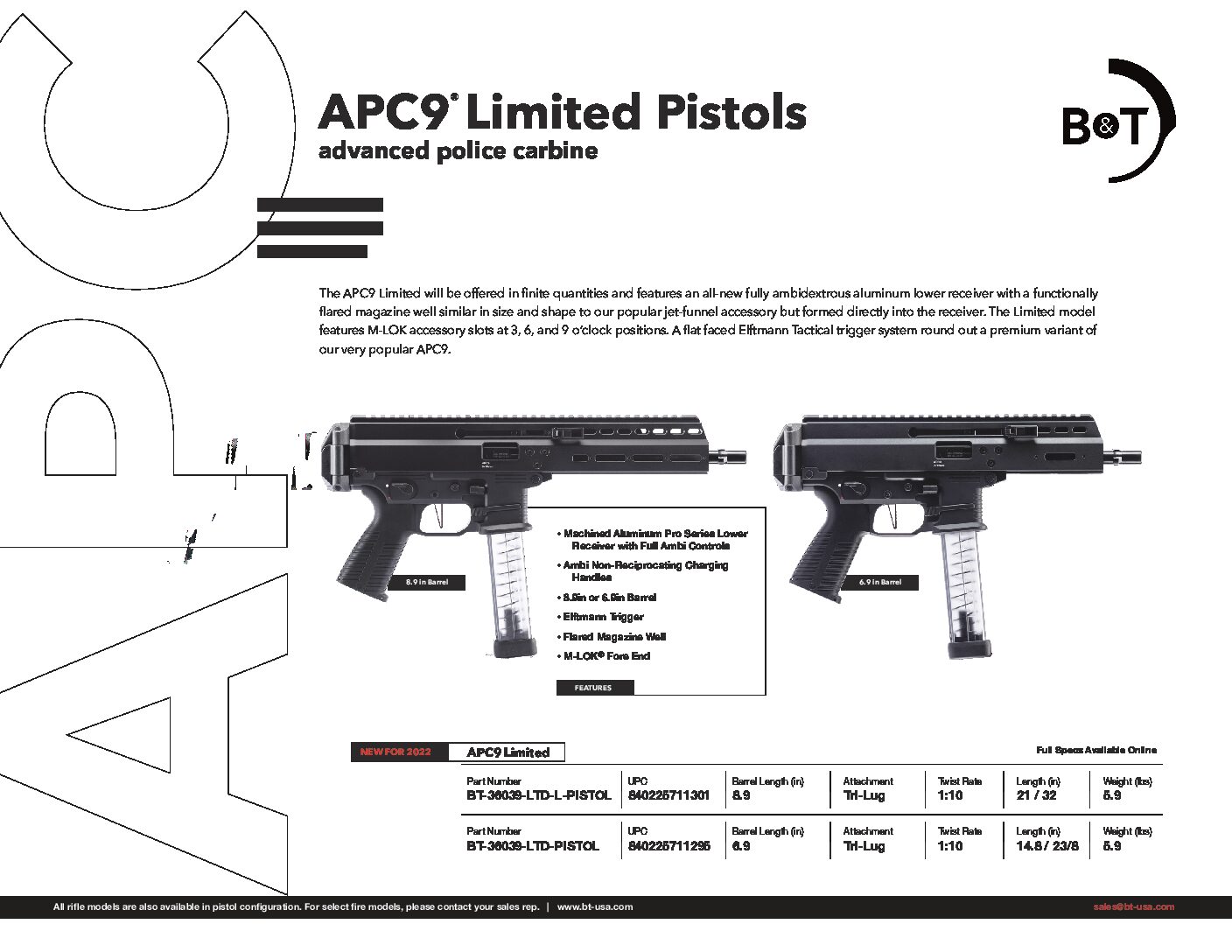 Built for discerning buyers, the APC9 LIMITED 6.7” – PISTOL offers proven .7 performance.